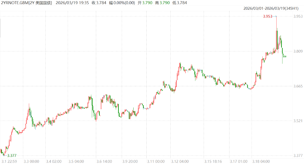 (美伊冲突以来,2年期美债收益率一度累升超50个基点)